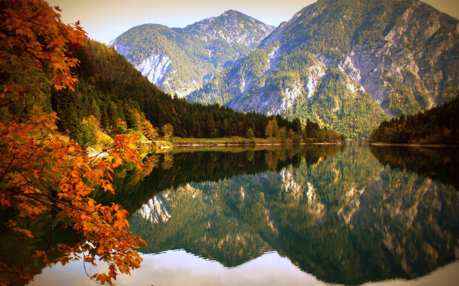 Autumn Lake and Yellow Forest with Mountains - 1920x1200