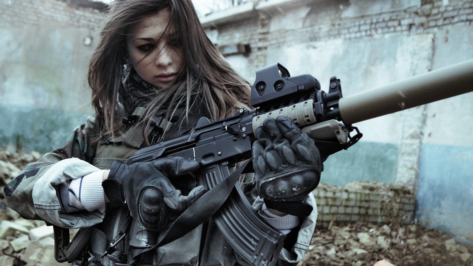 Beautiful Asian Warrior Girl with Weapon - 2560x1440