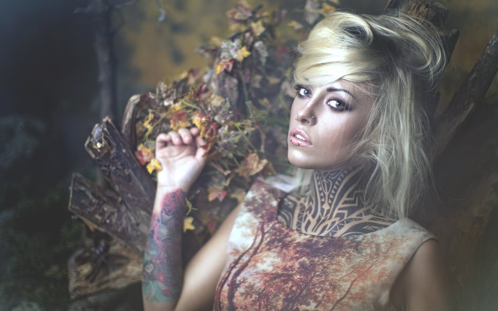 Beautiful Blonde Girl with Tattoo and Piercing - 2560x1600