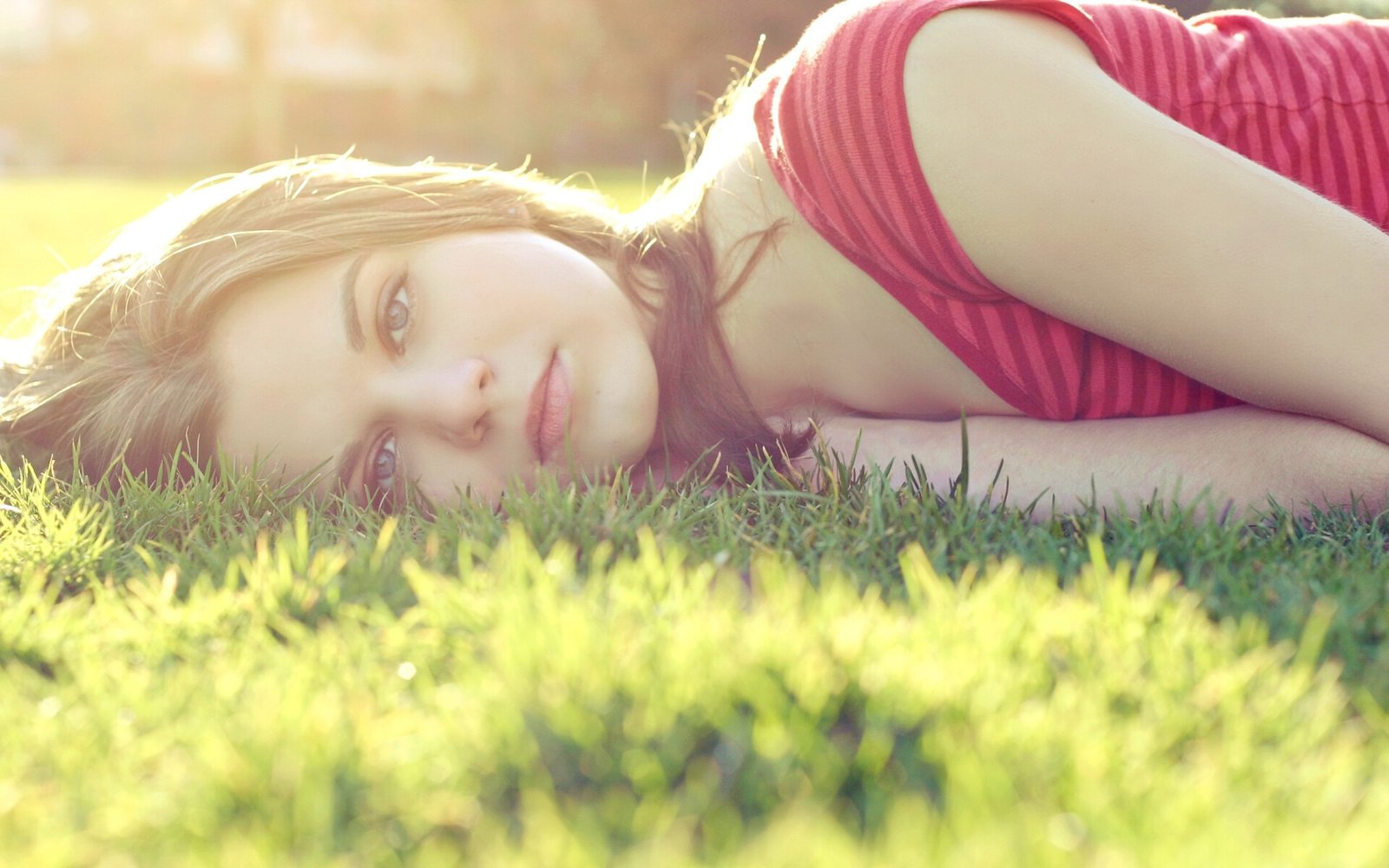 Beautiful Blonde Teen Girl on the Green Grass - 1920x1200