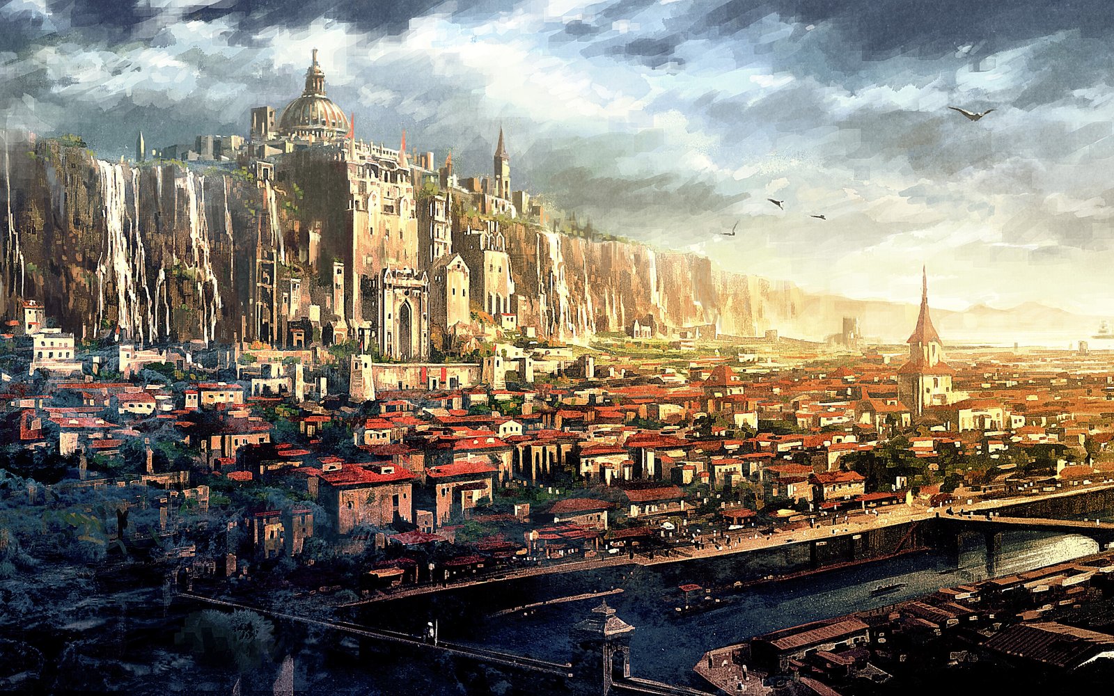 Beautiful Great Fantasy City with Old and Modern Houses - 2880x1800
