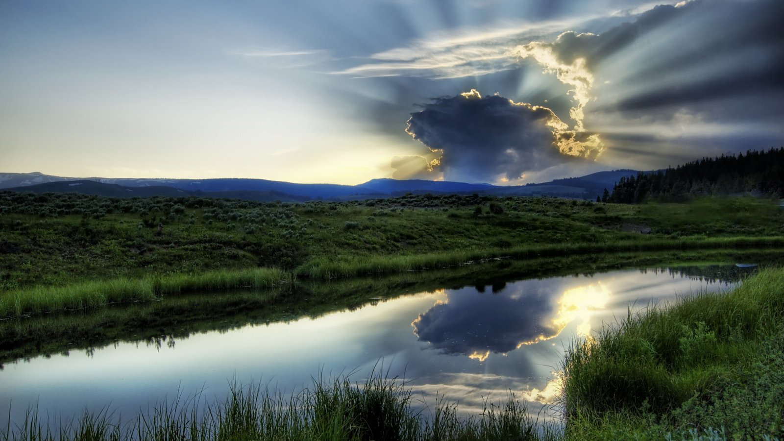 Beautiful Green Sunset Forest and Lake - 2560x1440