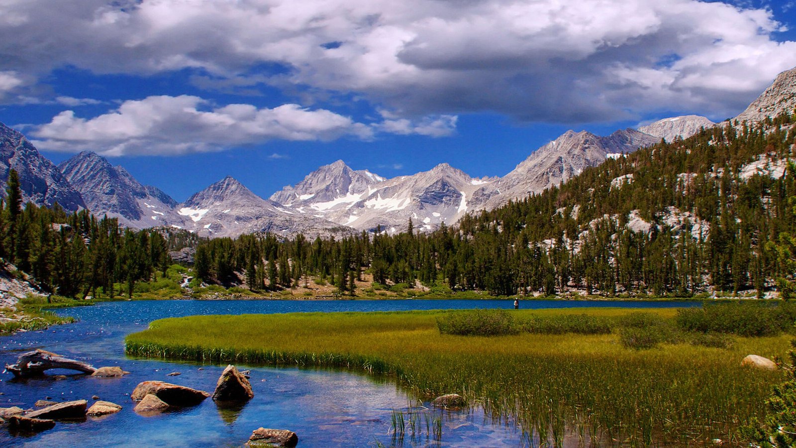 Beautiful Mountain Valley River Trees and Grass - 2560x1440