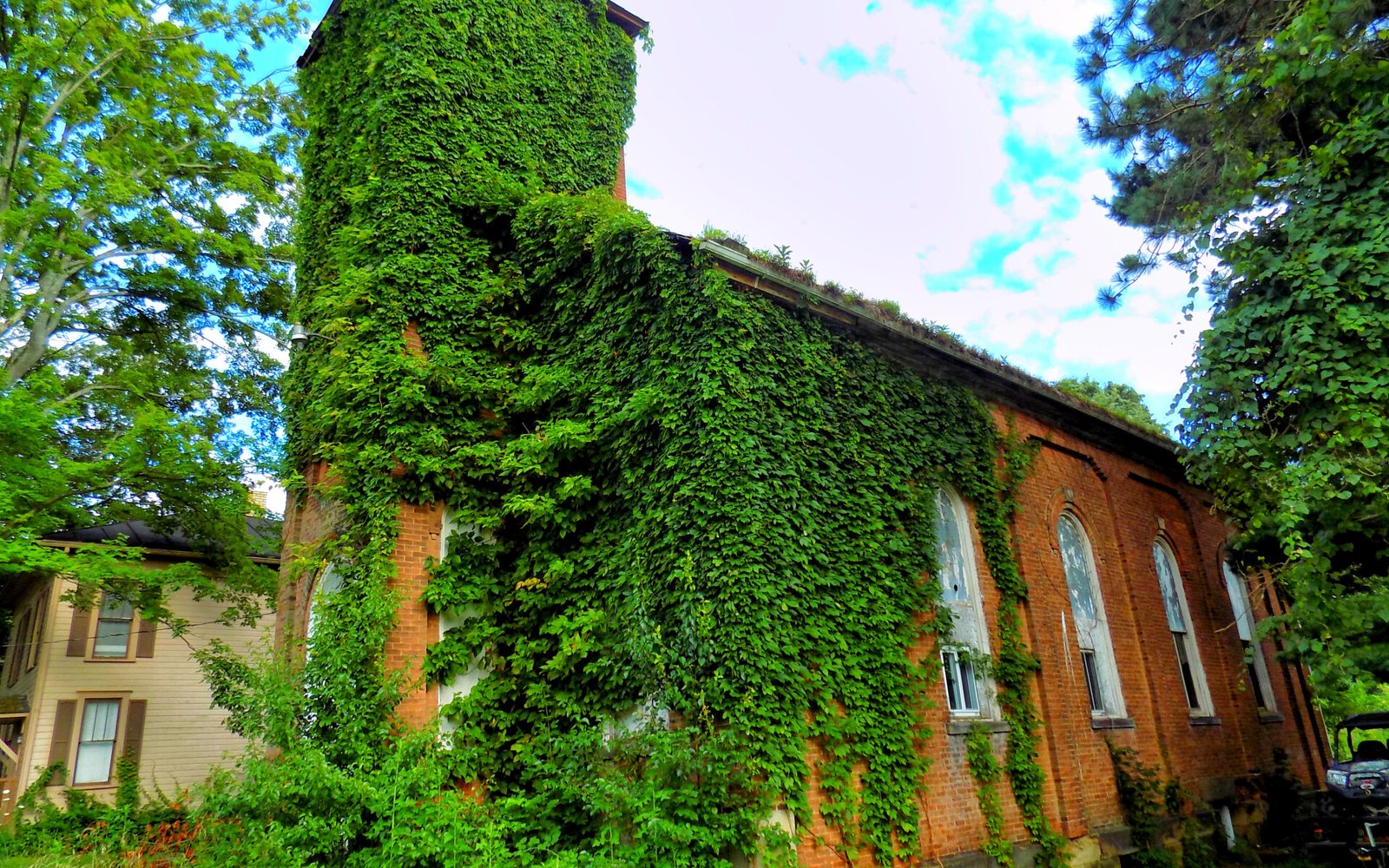 Beautiful Old Big Abandoned House with Grass on the Wall - 1920x1200