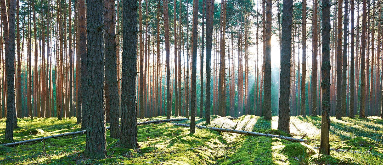 Beautiful Old Pine Forest and Sun Rays - 3000x1297