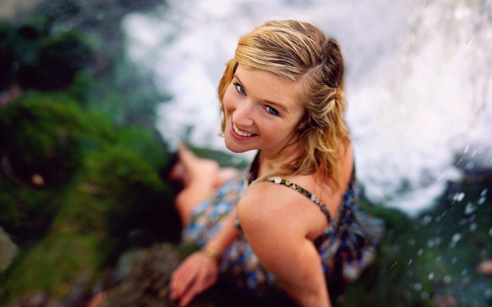 Beautiful Smiling Girl and Waterfall - 2560x1600