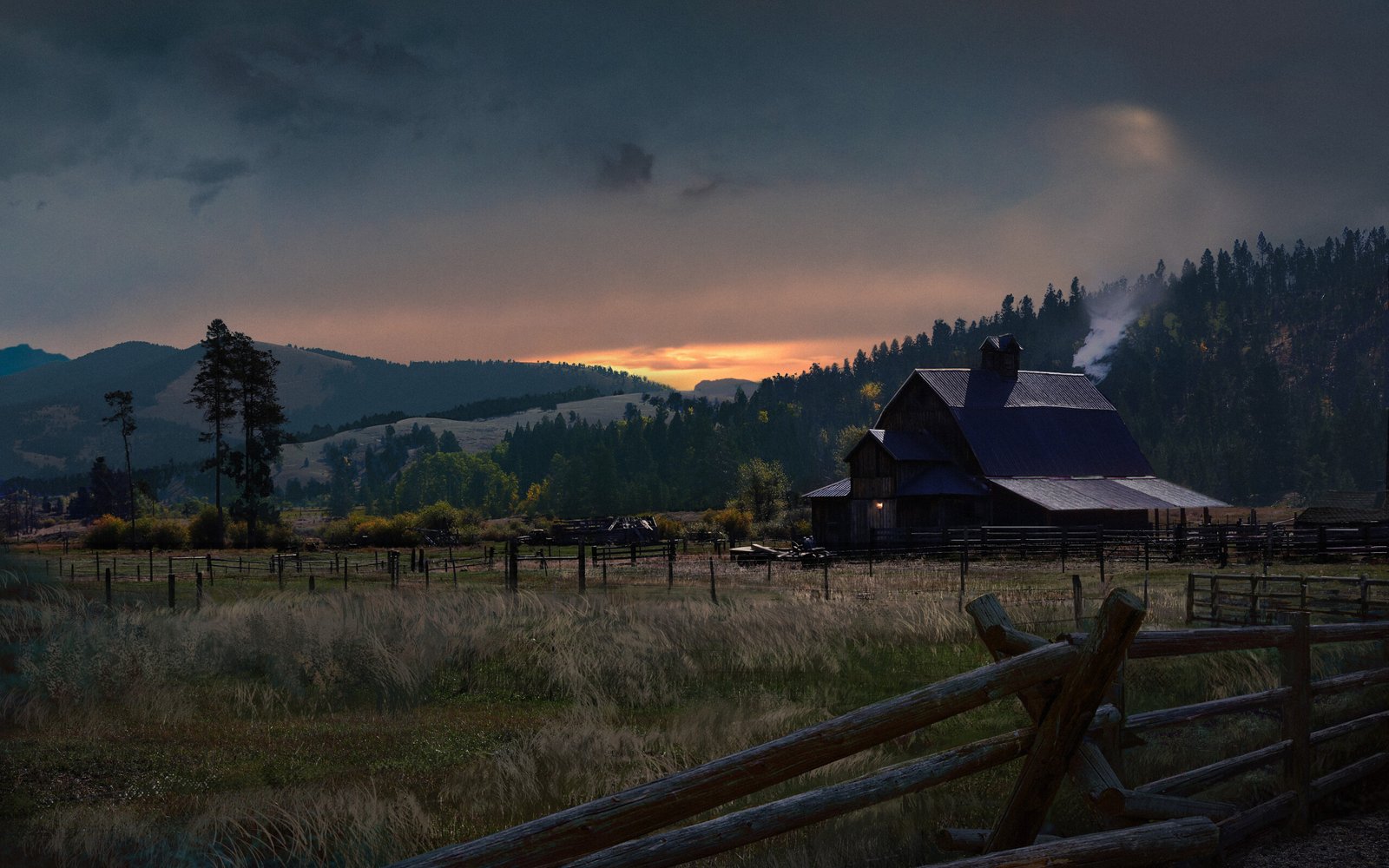 Beautiful Sunset Single Old Village and Mountain Forest - 2560x1600