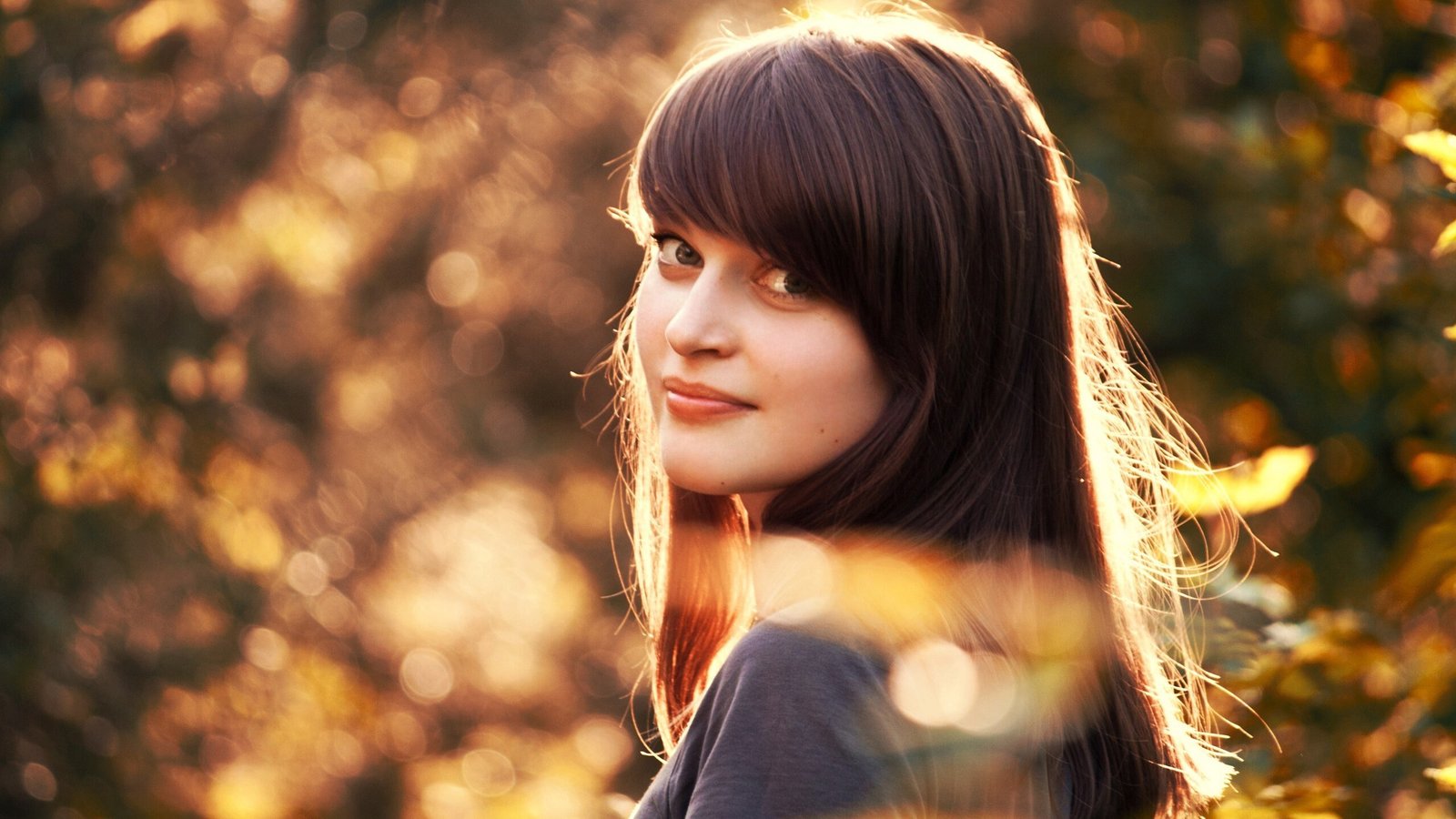 Beautiful Teen Smiled Girl in the Autumn Park - 2560x1440