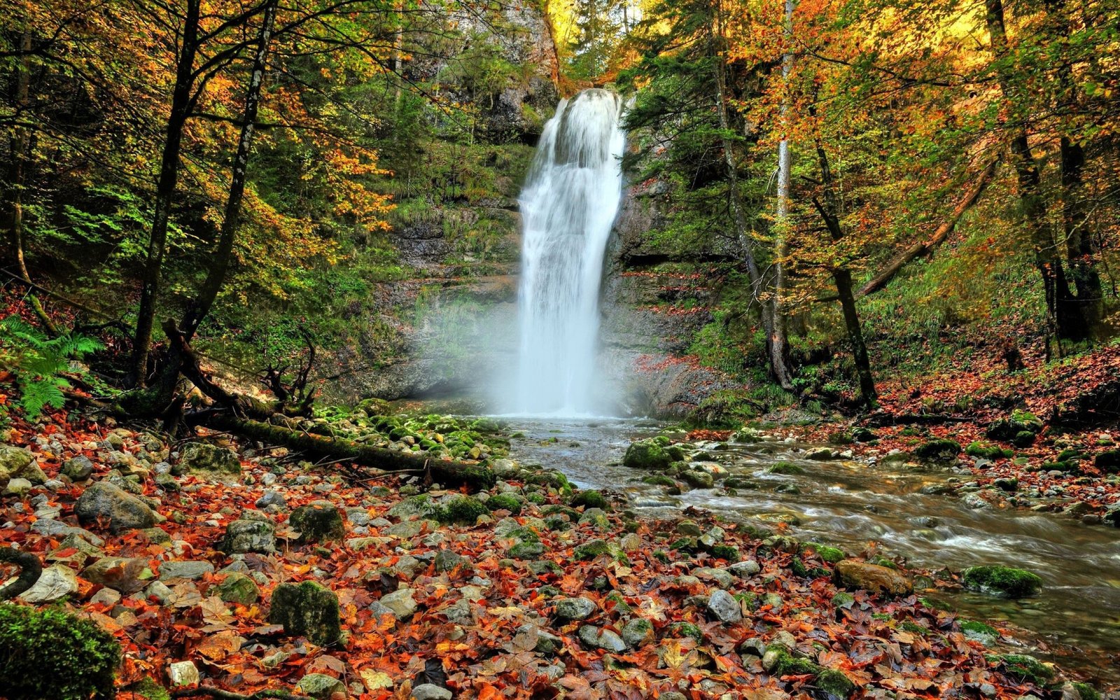 Beautiful Waterfall in the Autumn Forest - 1920x1200