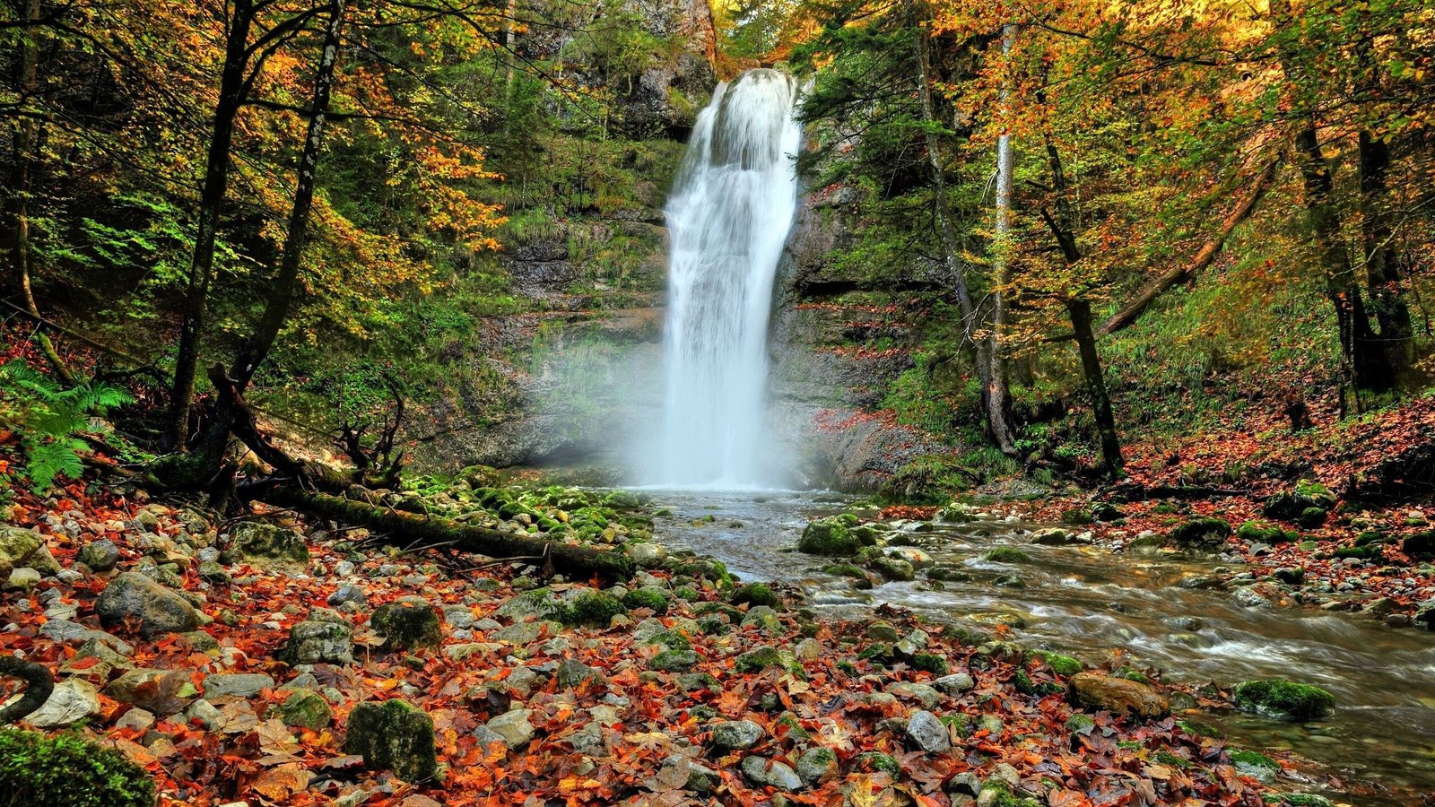 Beautiful Waterfall in the Autumn Forest - 2560x1440