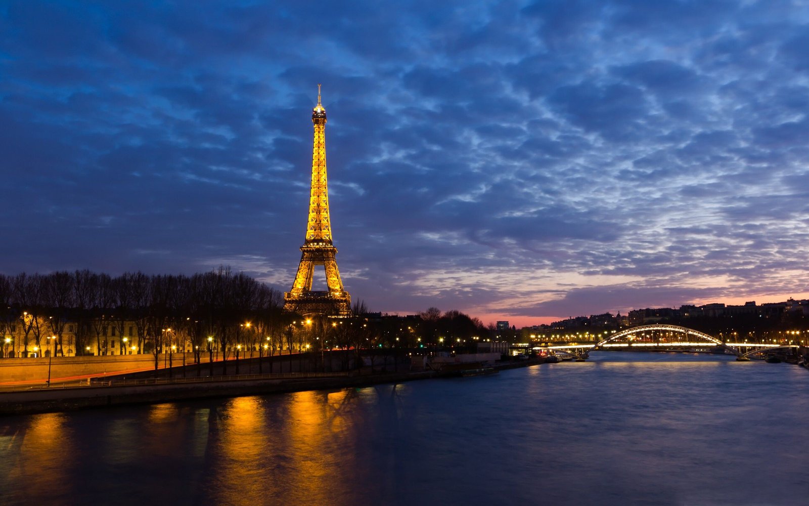 Beautiful Winter Paris and Glowing Eiffel Tower - 2560x1600