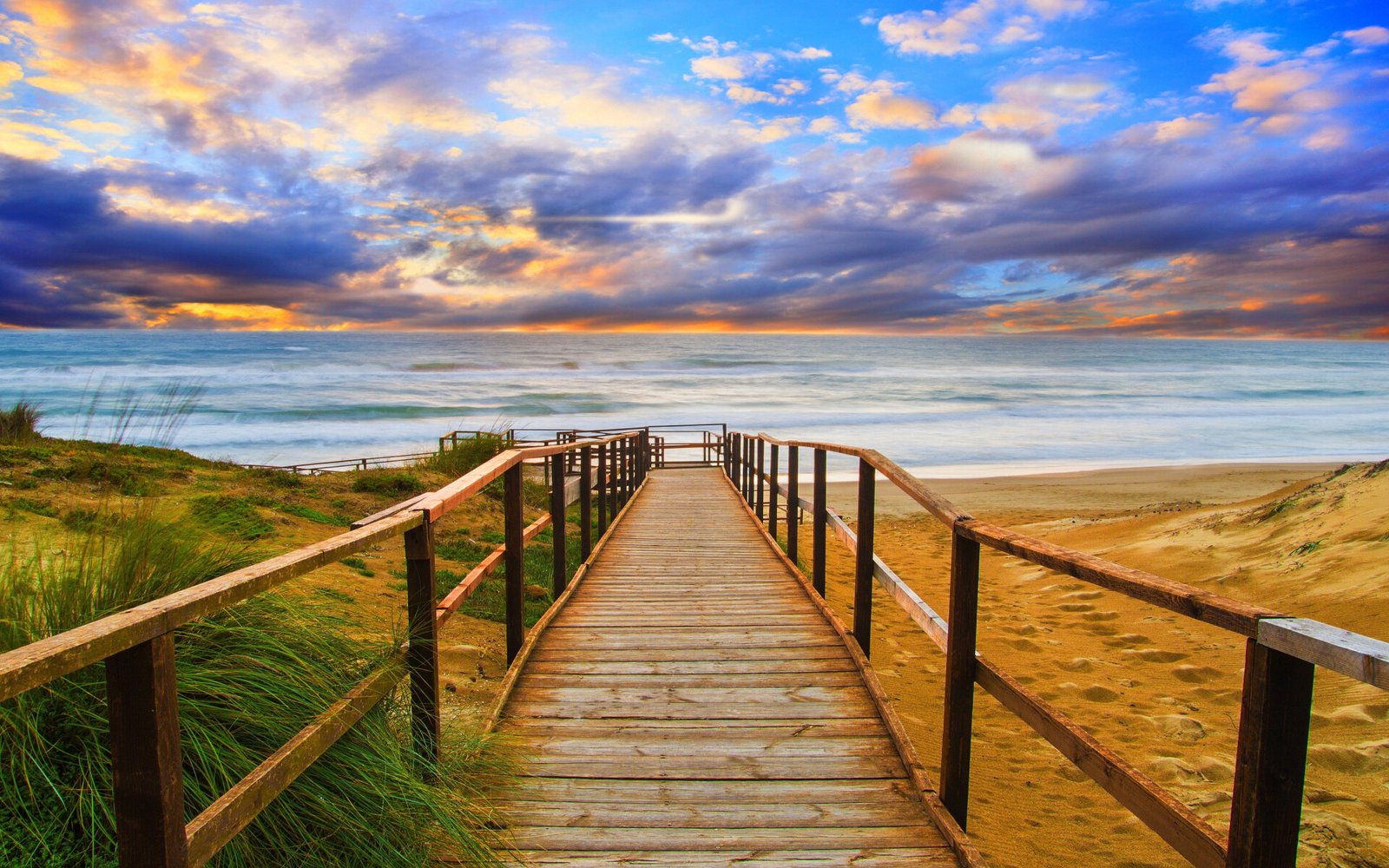 Beautiful Wood Bridge and Sand Beach - 1920x1200