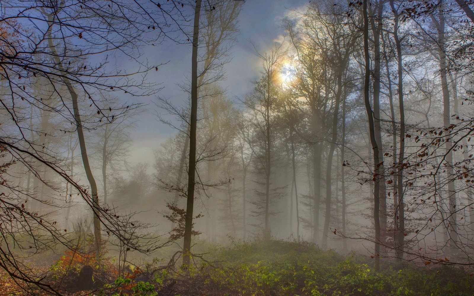 Foggy Old Autumn Forest and Grass - 2560x1600