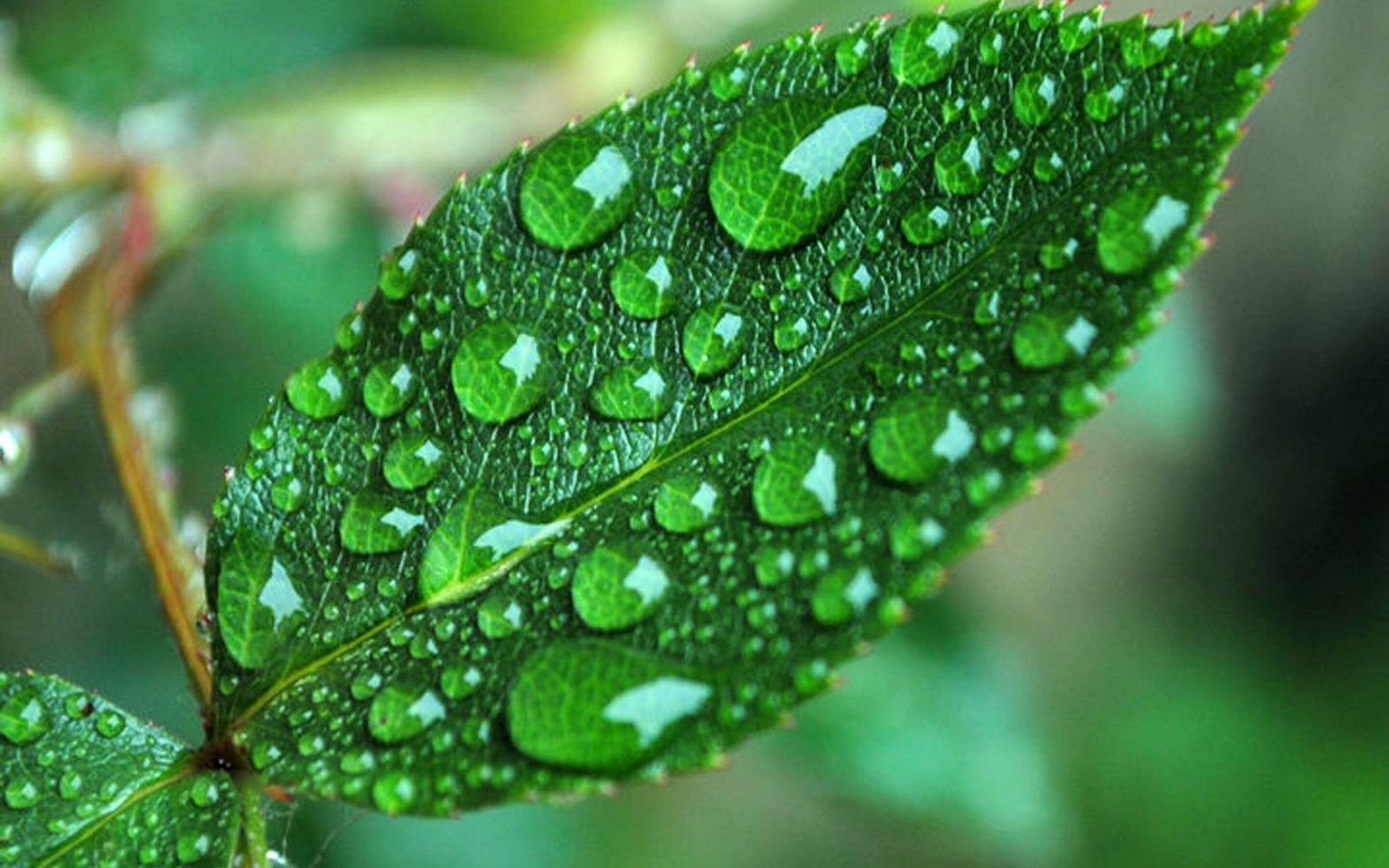 Green Leaf with Water Drops After Rain - 2880x1800