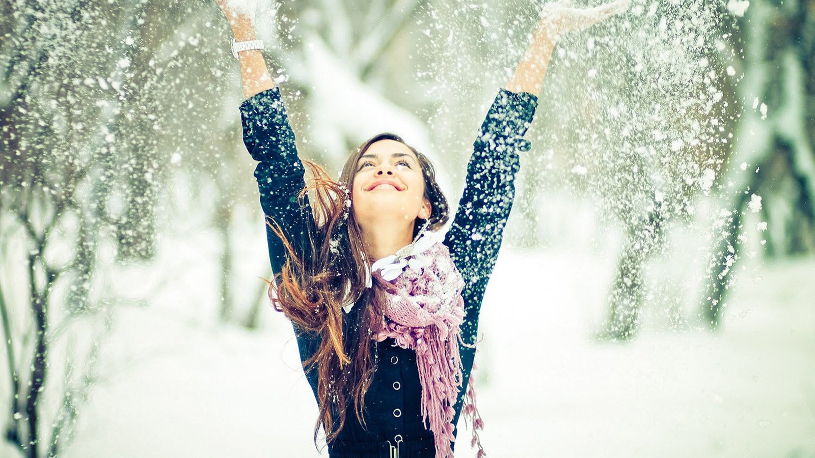 Happy Smiling Young Girl and Snow - 2560x1440