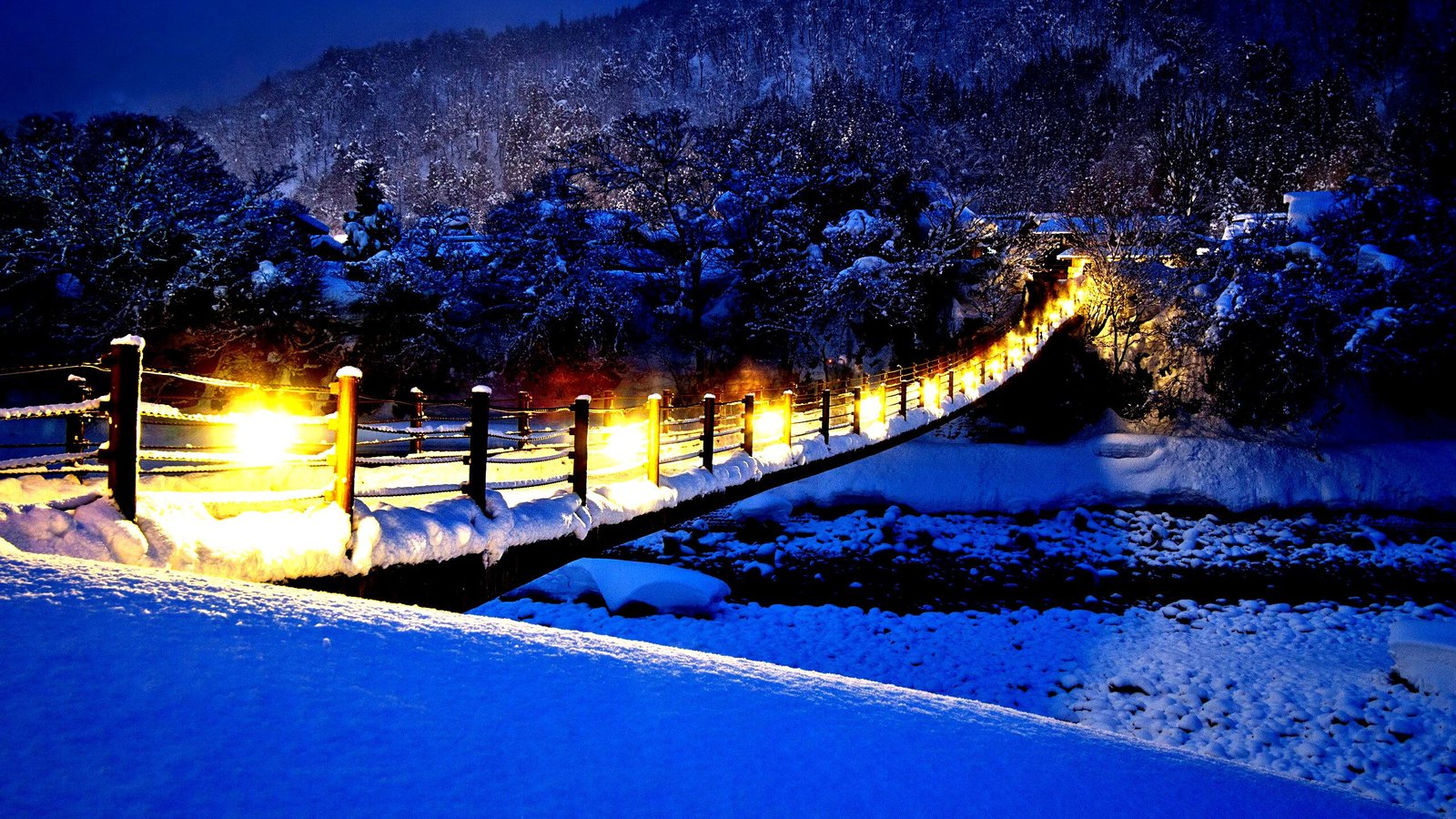 Illuminated Bridge in Winter City - 2560x1440