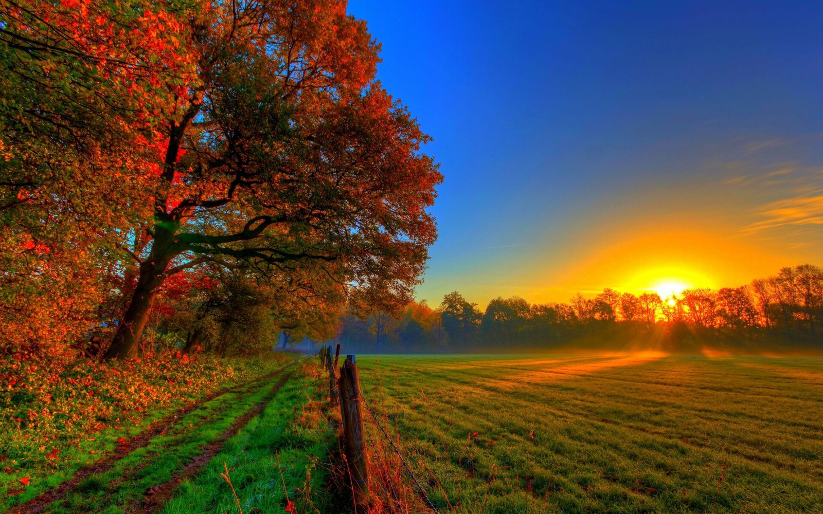 Impressive Sunrise Trees and Green Field - 1920x1200