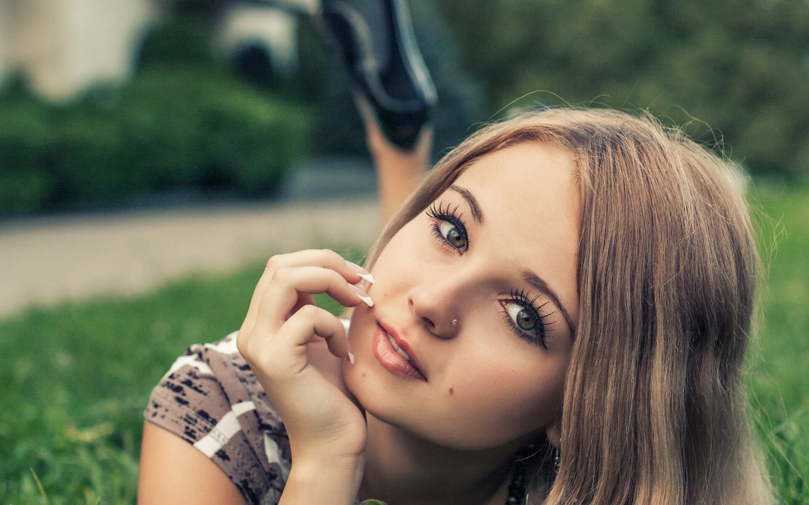 Kseniya Samburskaya Pretty Cute Blonde Girl on the Green Grass - 1920x1200