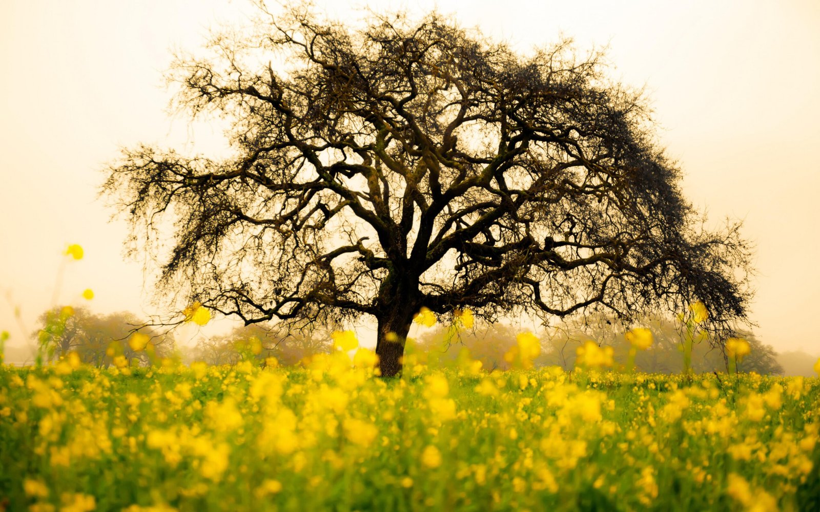 Many Flowers Around Single Tree - 2560x1600
