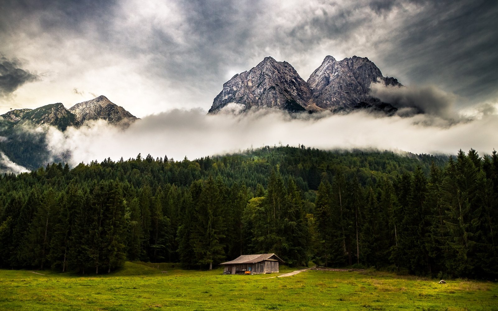 Mountains in Fog and Pine Forest - 2880x1800