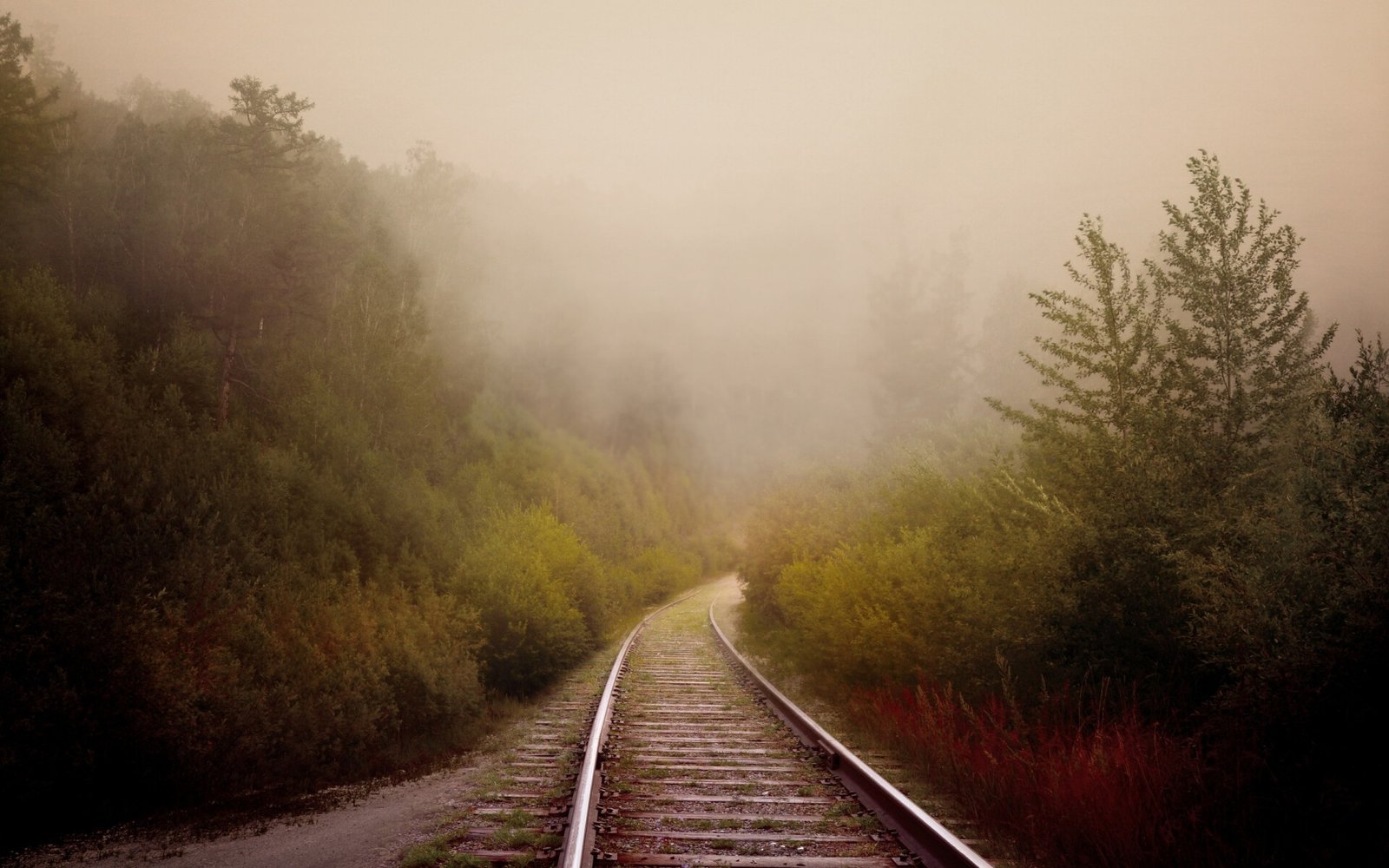 Old Railway Trees and Fog - 1920x1200