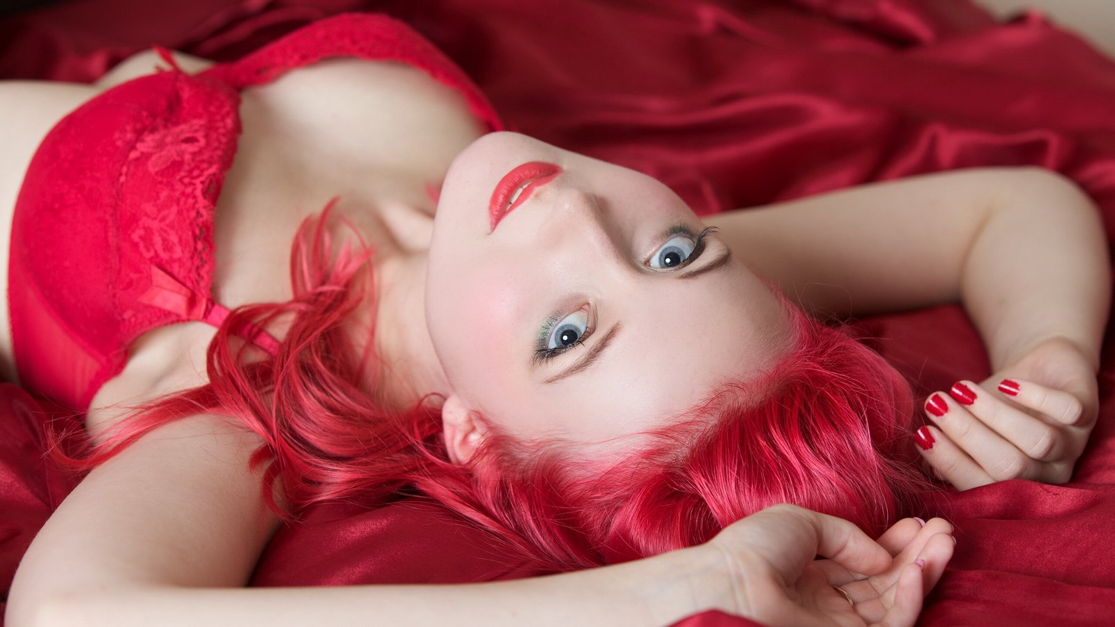 Pink Haired Teen Girl on the Bed - 2560x1440