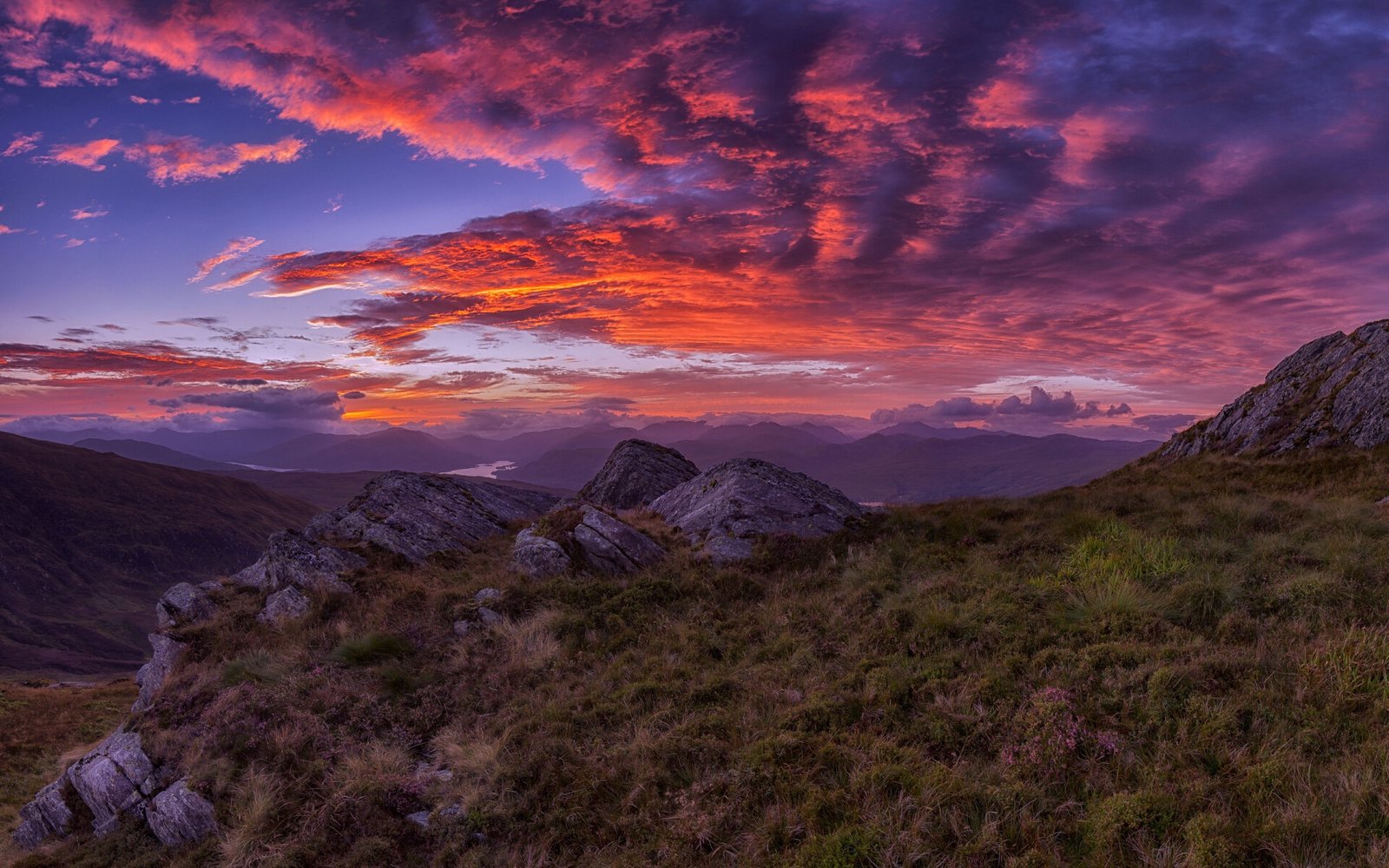 Pink Mountain Valley Sunset and Stones - 1920x1200