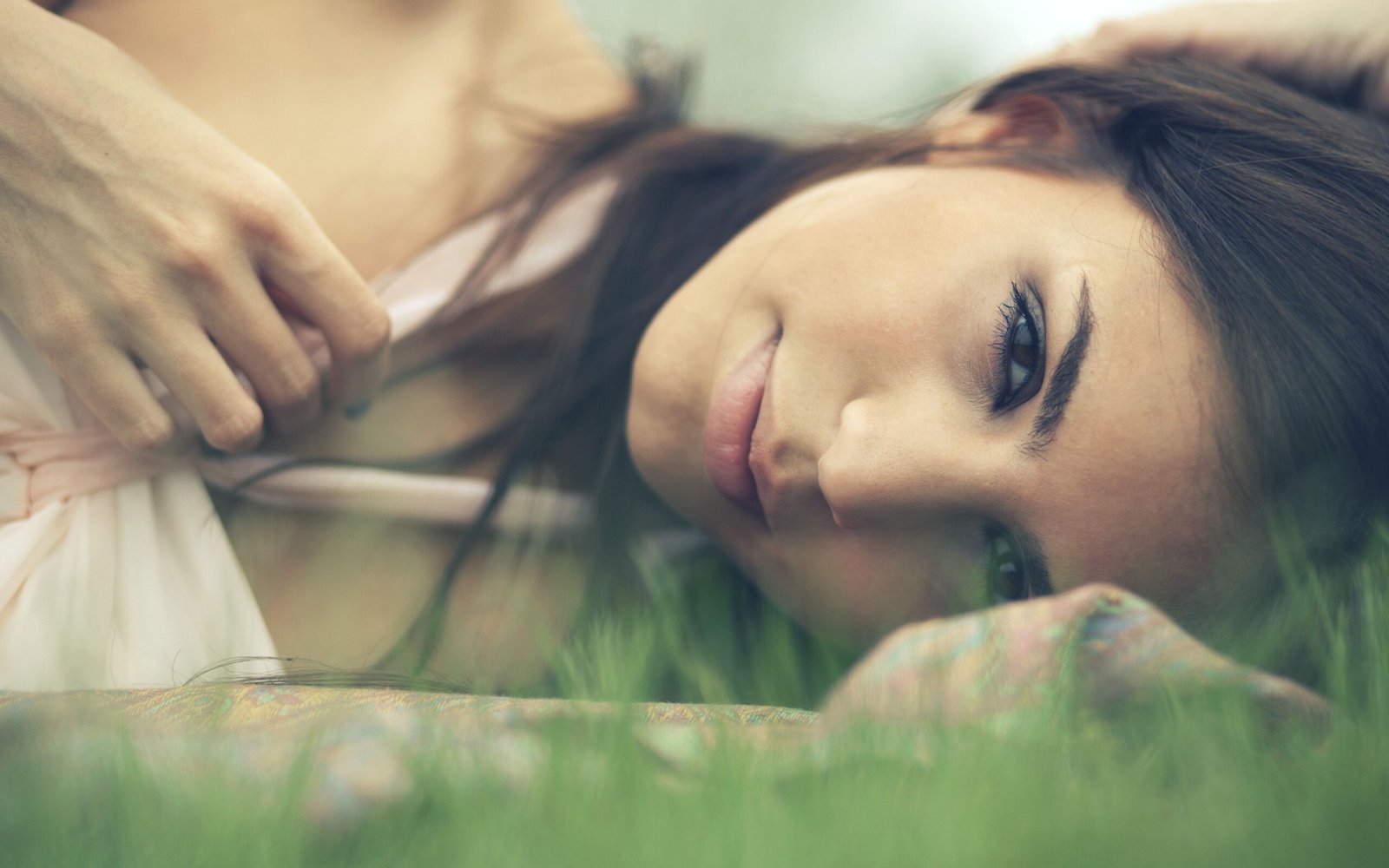 Pretty Beautiful Young Girl on the Green Grass - 2560x1600