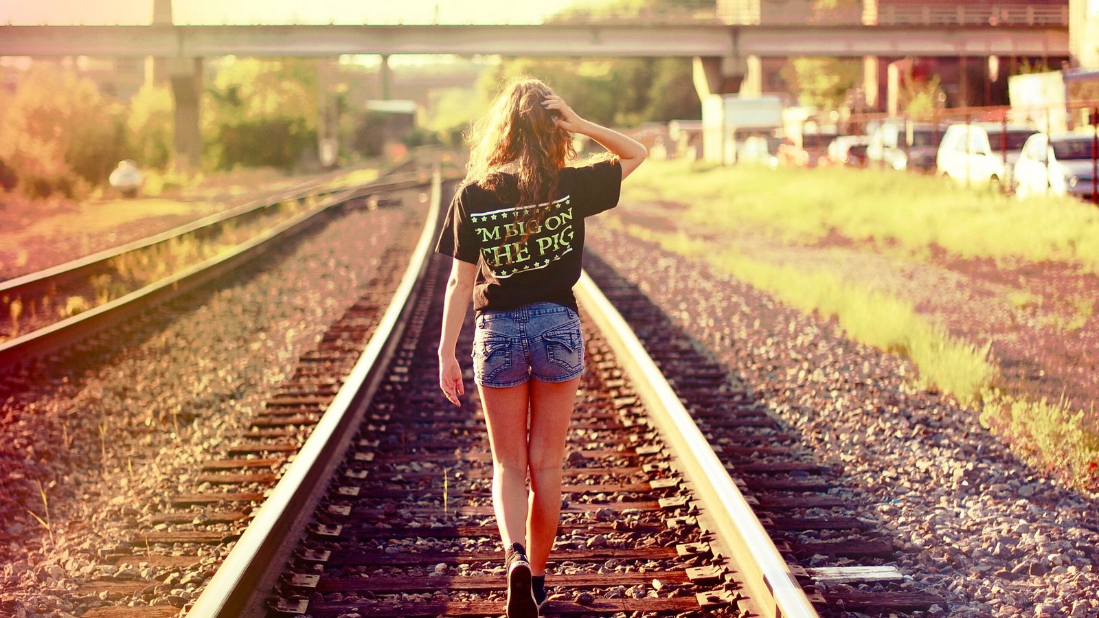 Pretty Brown Girl Walks on Railway - 2560x1440