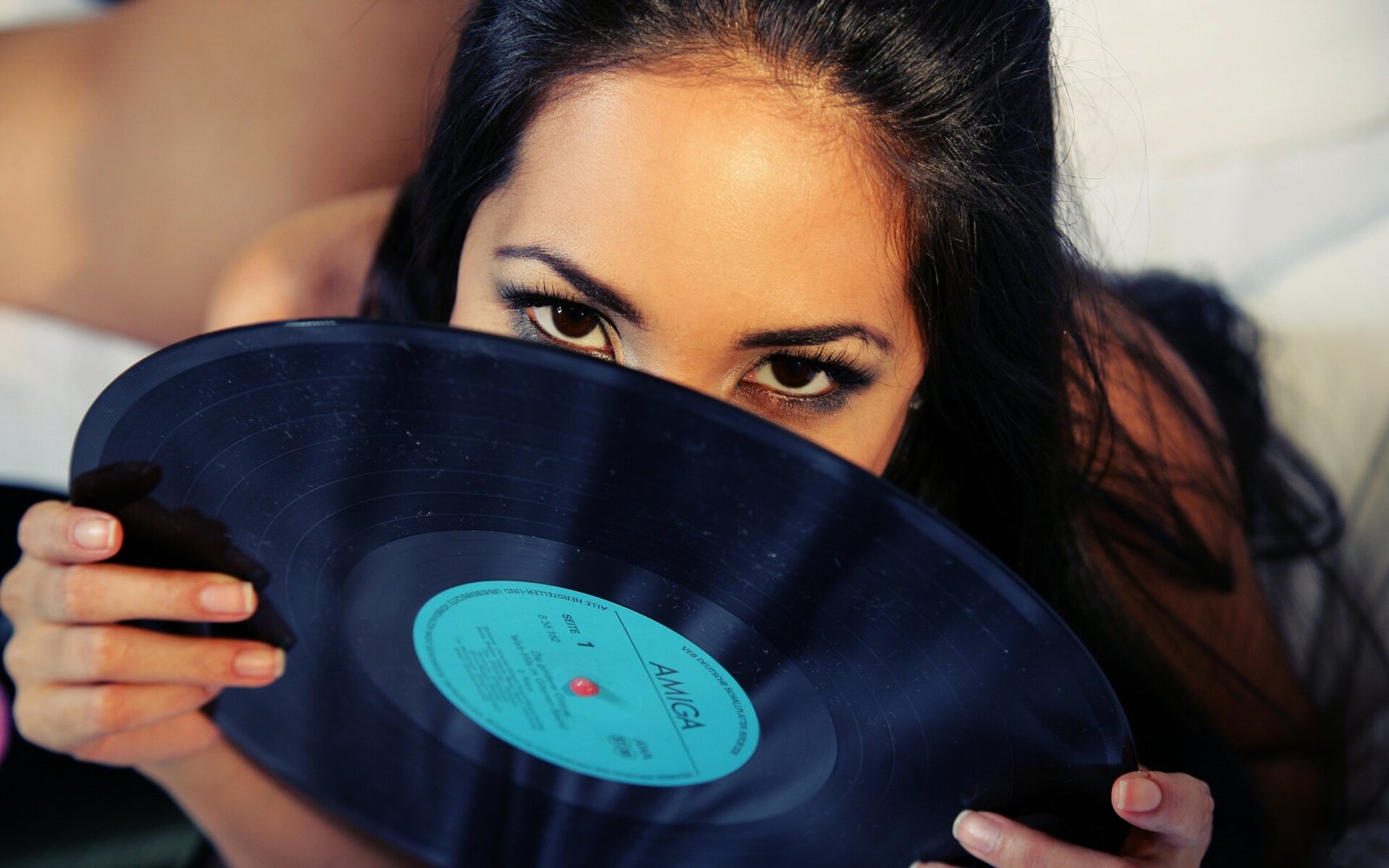 Pretty Latino Brunette Girl with Vinyl Record - 1920x1200