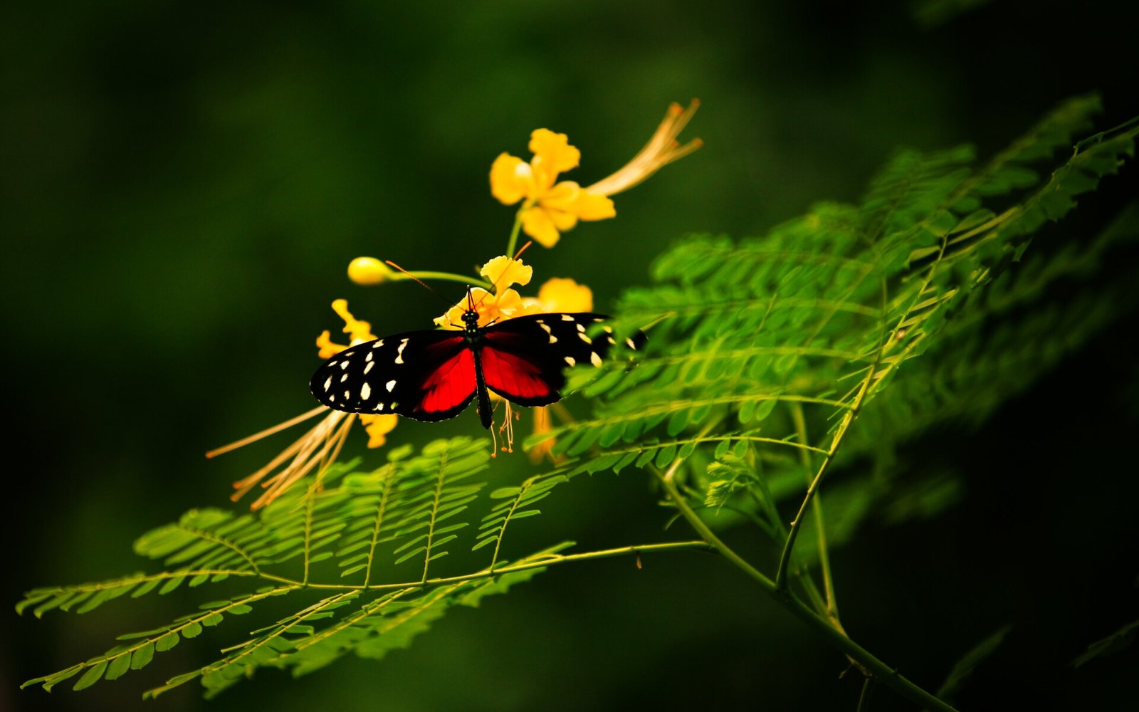 Pretty Red Butterfly on the Green Leaf - 1920x1200