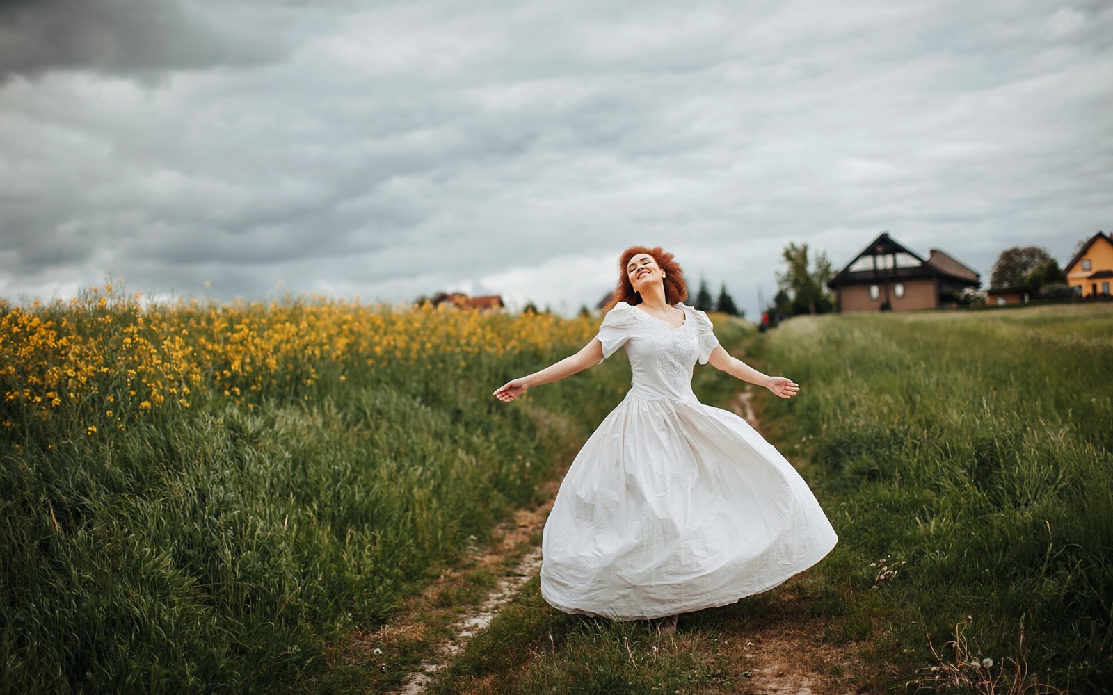 Pretty Redhead Girl in the Field - 1920x1200