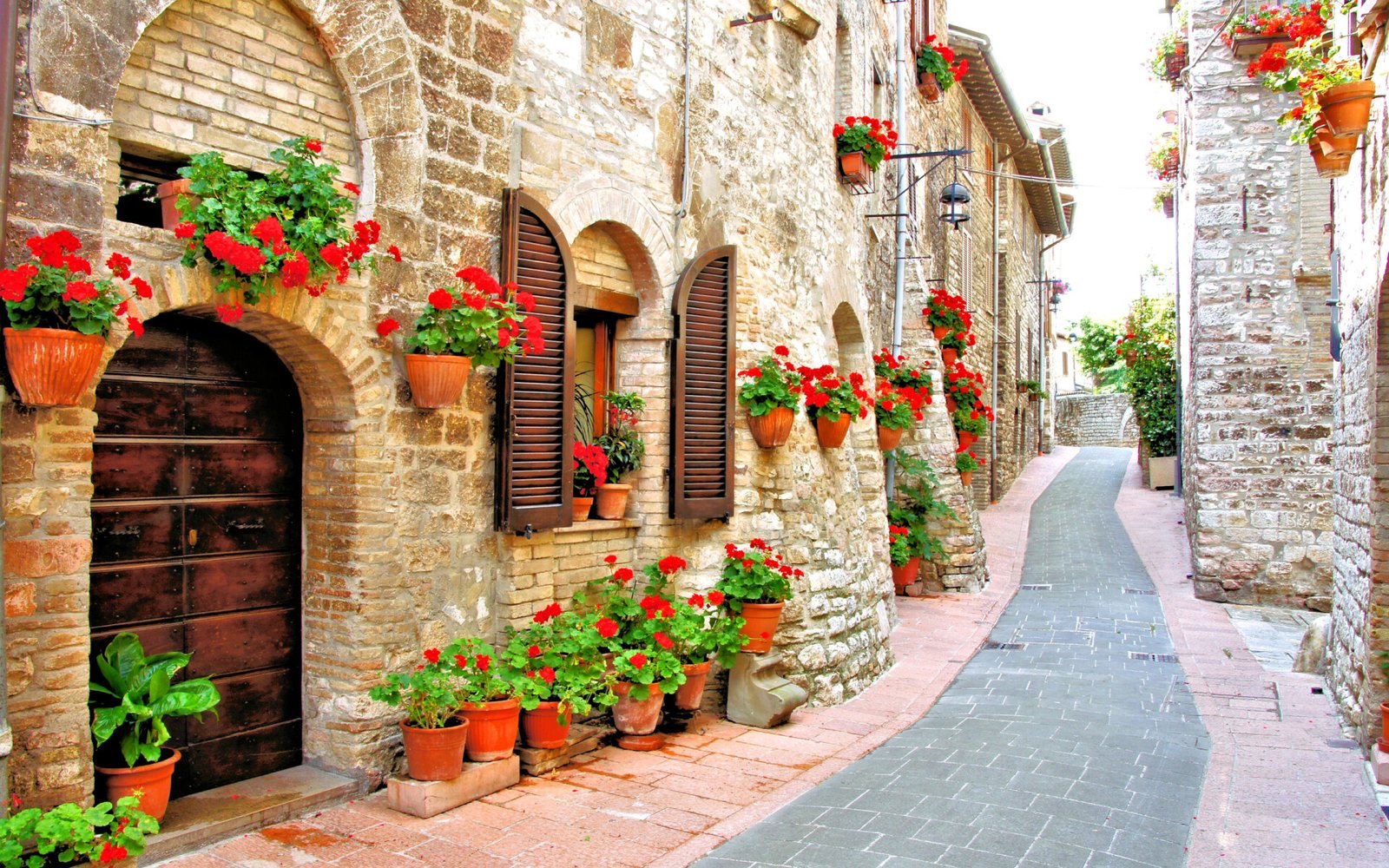 Red Flowers on the Old Beautiful Little Street - 1920x1200