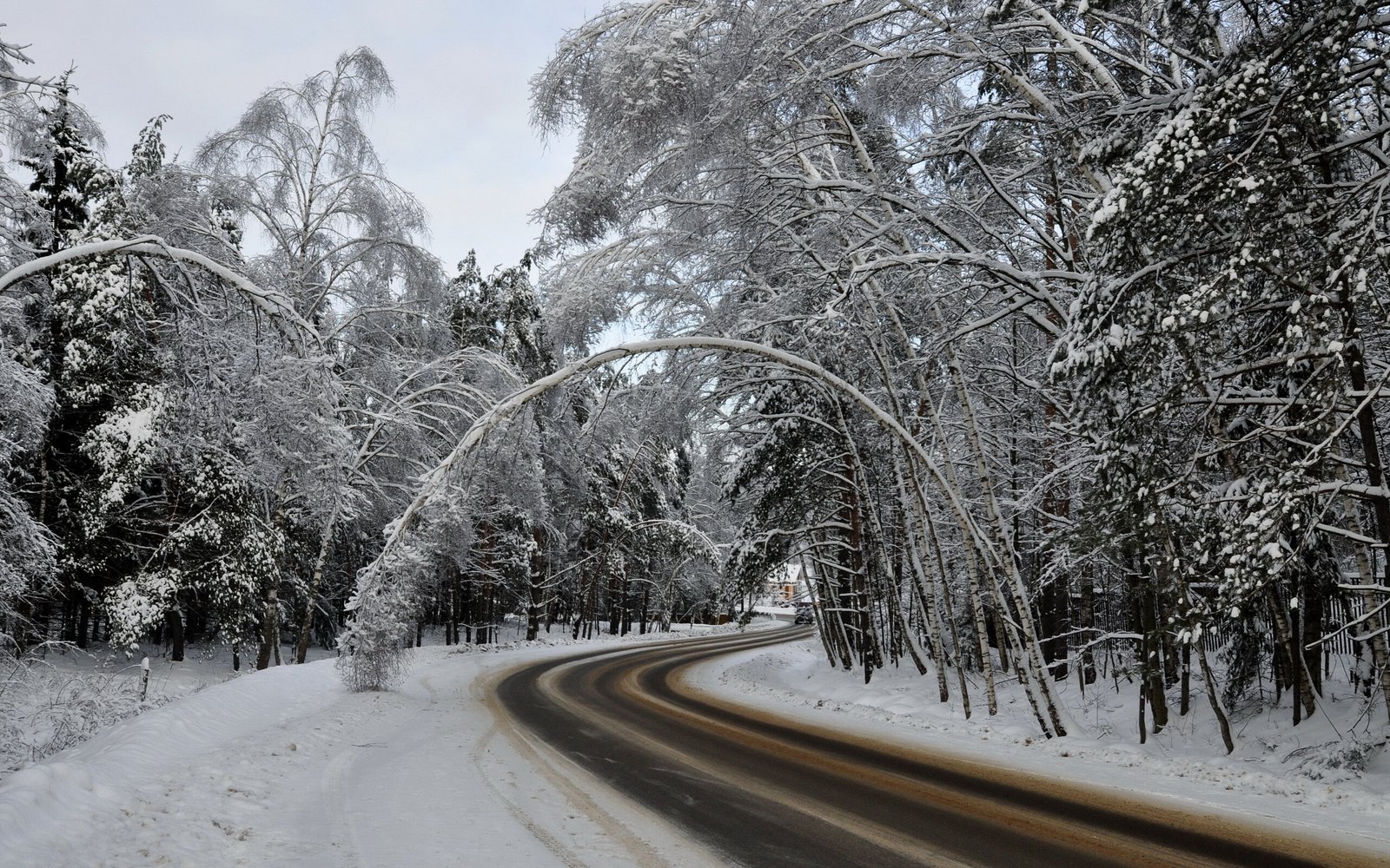 Road in Winter Snowy Forest - 2560x1600