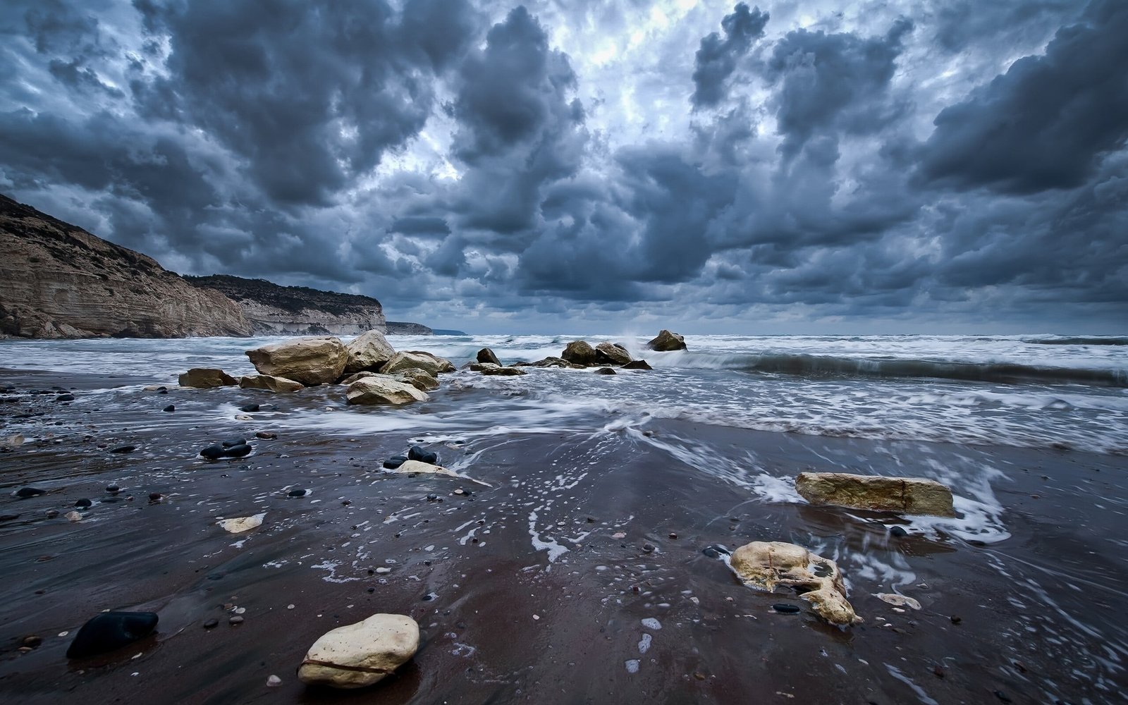 Rocks on Coast and Waves - 2560x1600