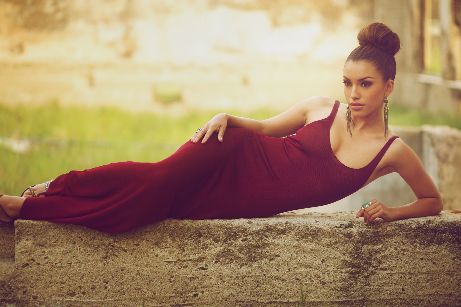 Sexy Hot Babe Zuleyka Silver in Beautiful Red Dress - 5608x3739