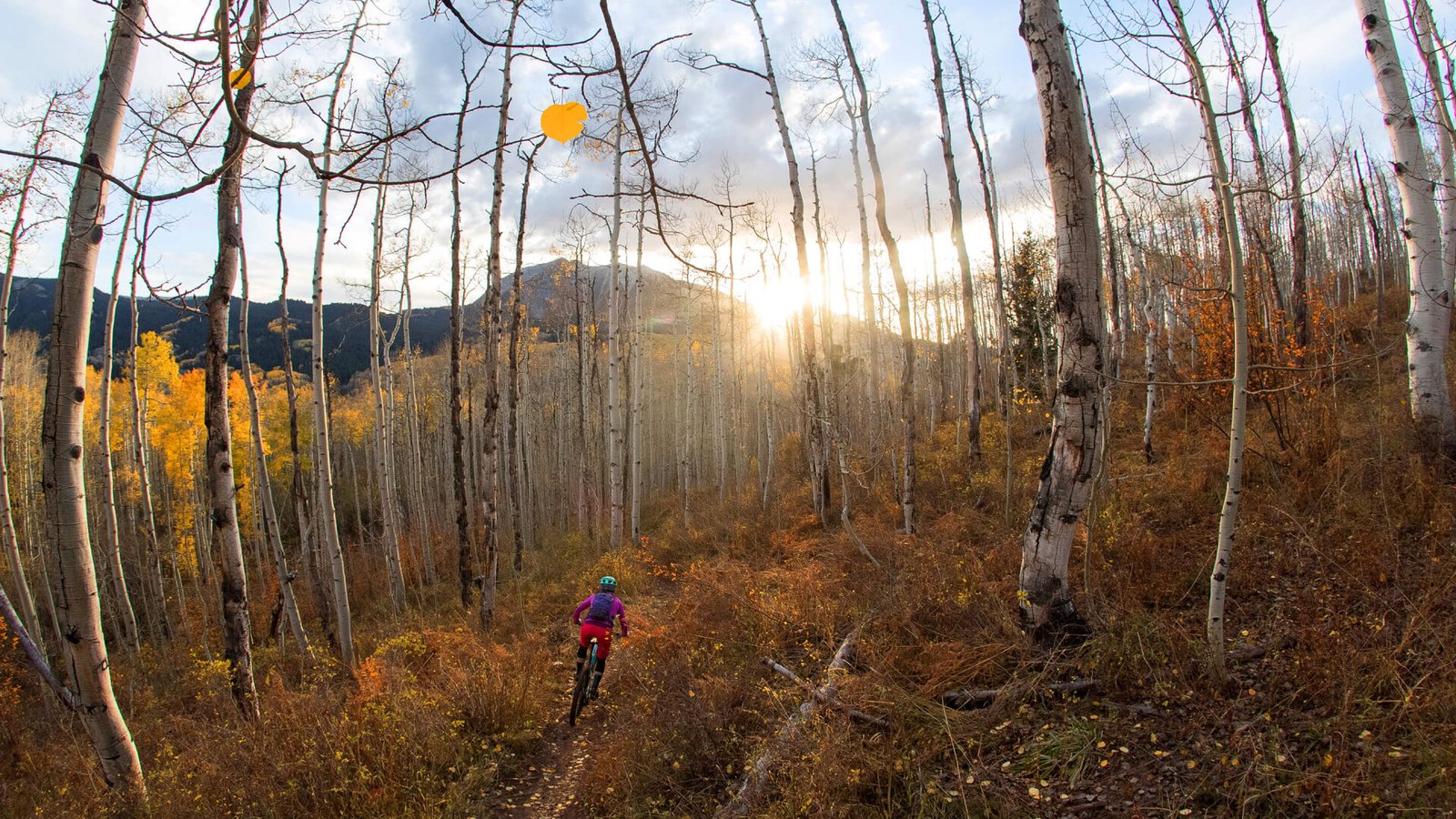 Sunrays in Beautiful Birch Forest and Biker - 1920x1080 (1080p)