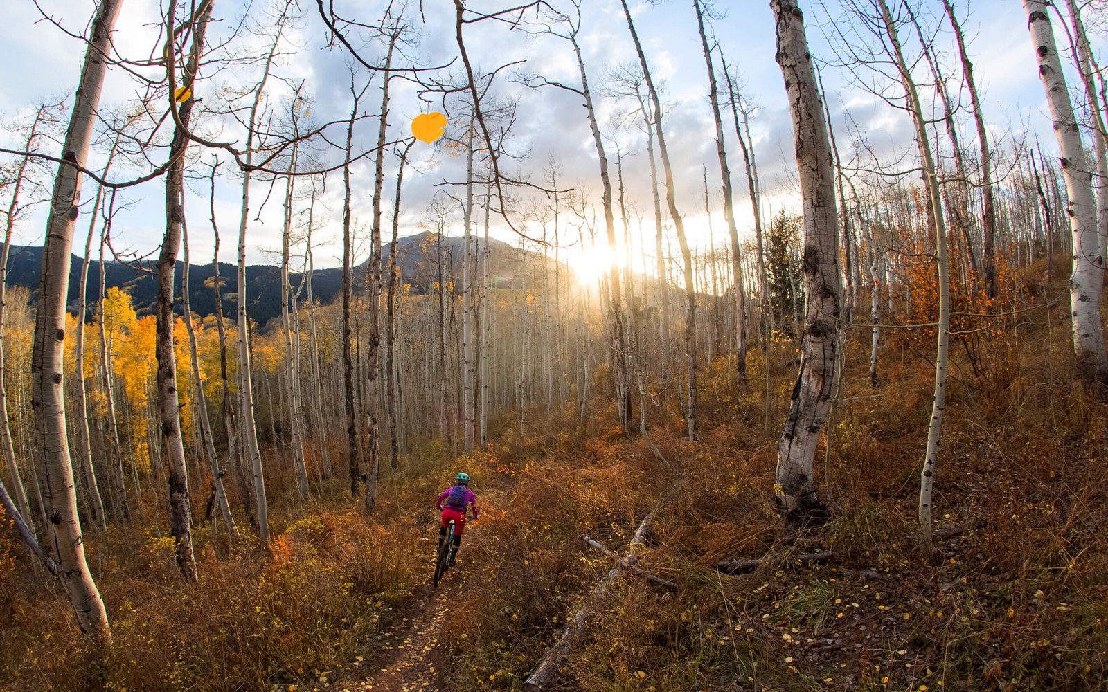 Sunrays in Beautiful Birch Forest and Biker - 2560x1600