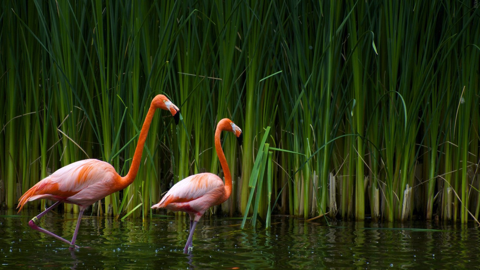 Two Pink Flamingo on Lake - 1920x1080 (1080p)