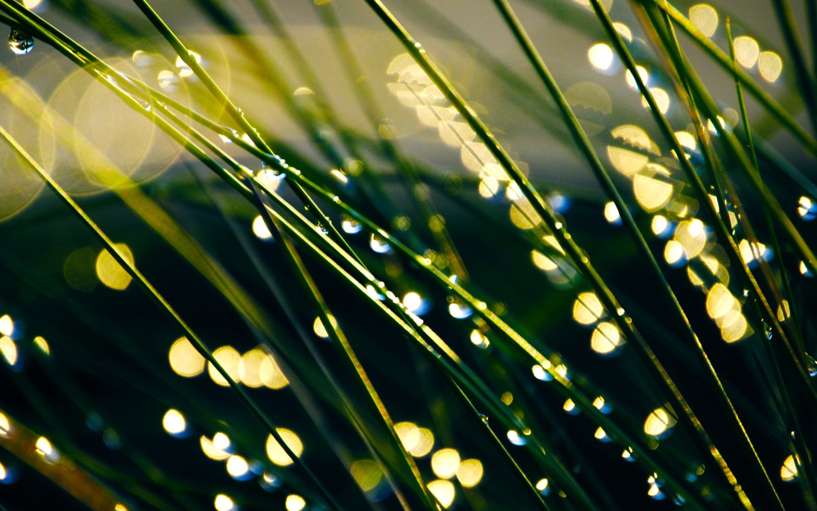 Water Drops Dew on the Green Grass Close Up - 2880x1800