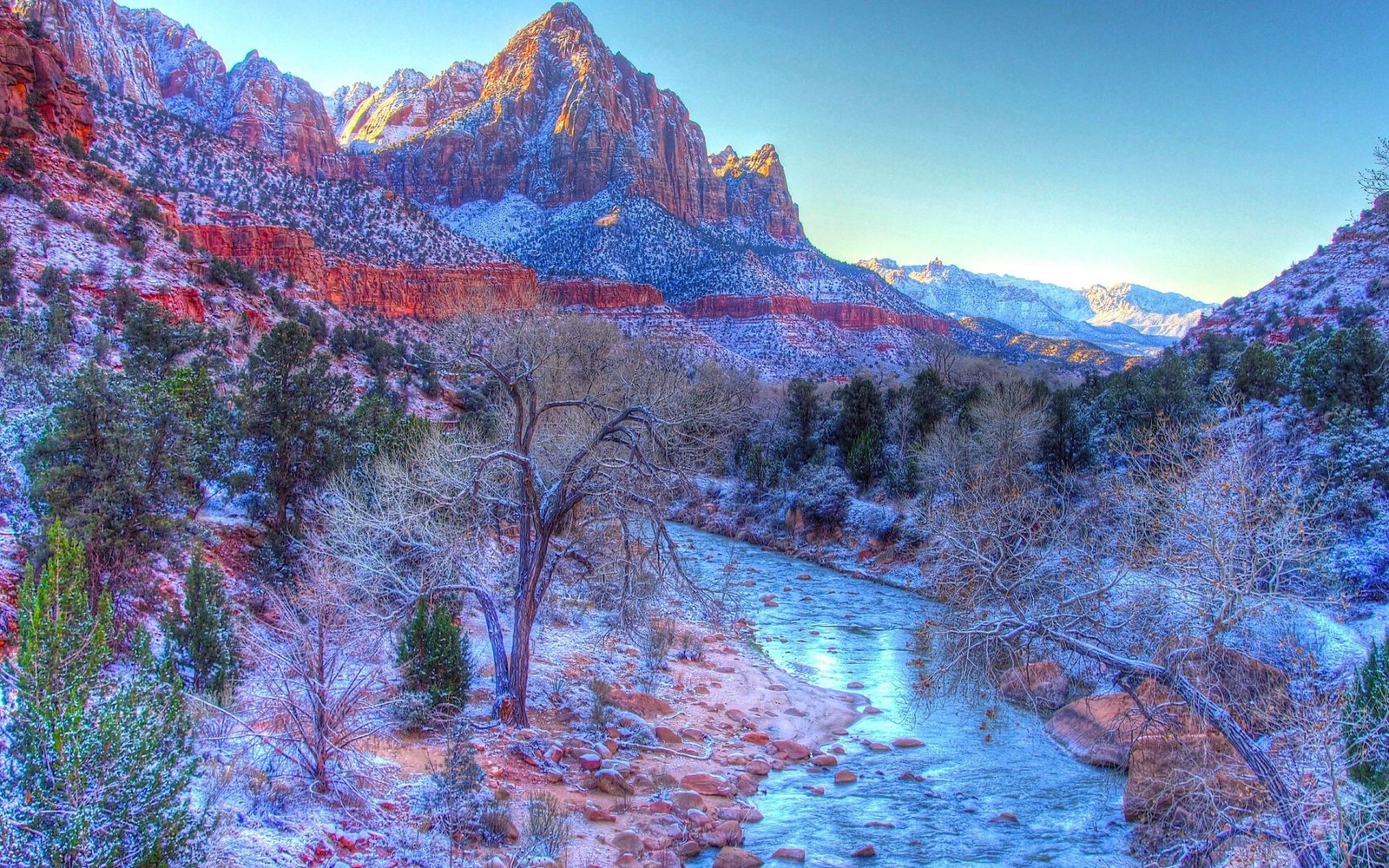Wonderful Snowed Mountain Valley and River - 1920x1200