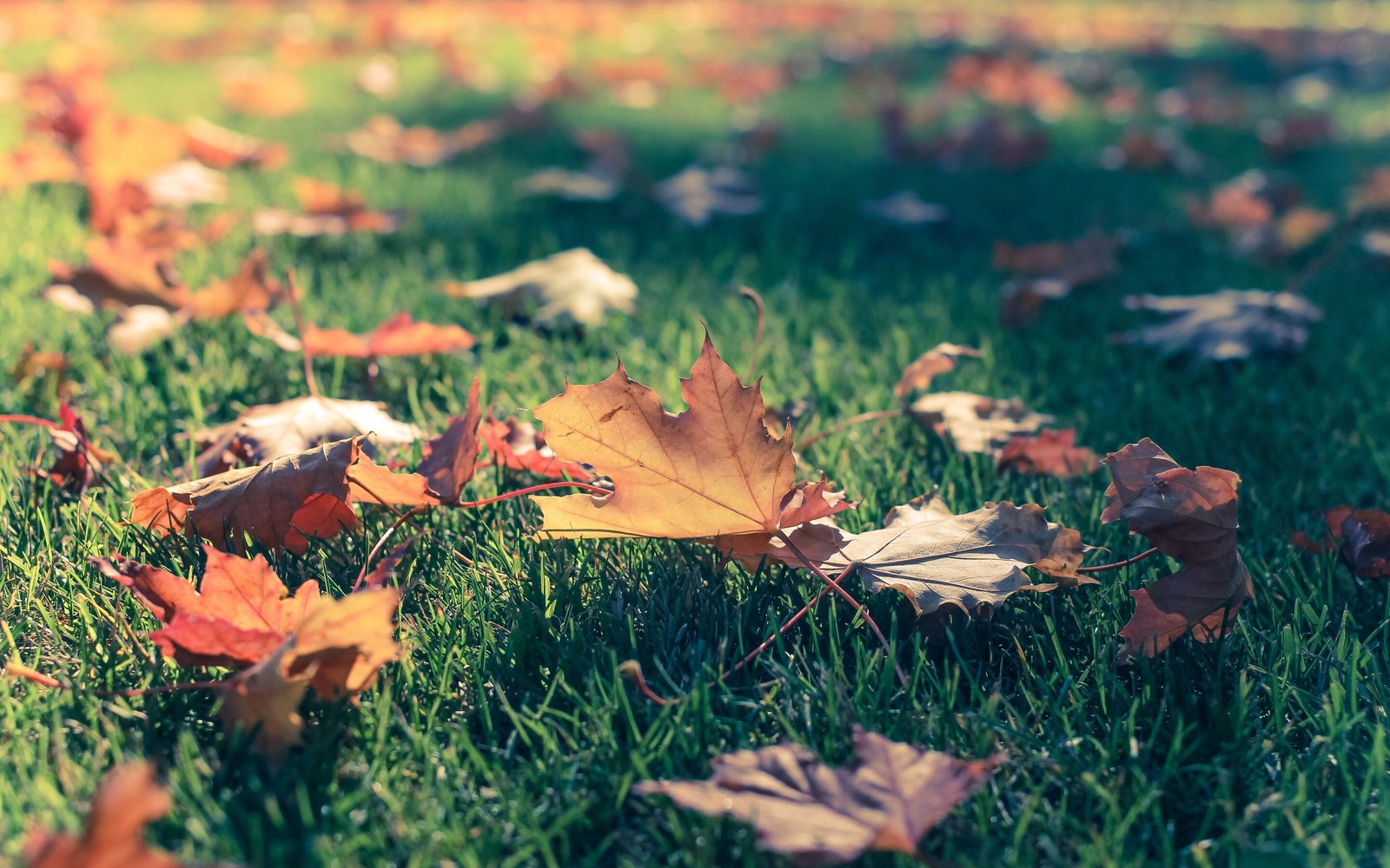 Yellow Foliage on the Green Grass Autumn - 2880x1800