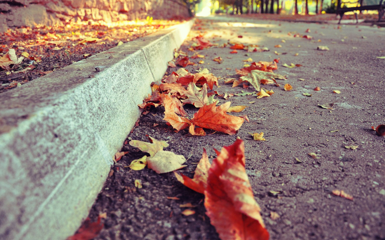 Yellow Old Leaves on the Road - 1920x1200