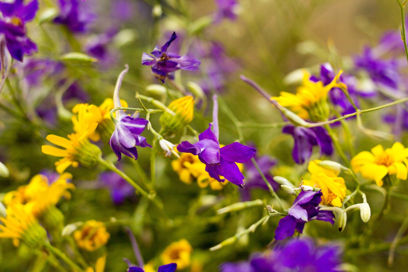 Yellow and Purple Flowers in the Garden - 2560x1707