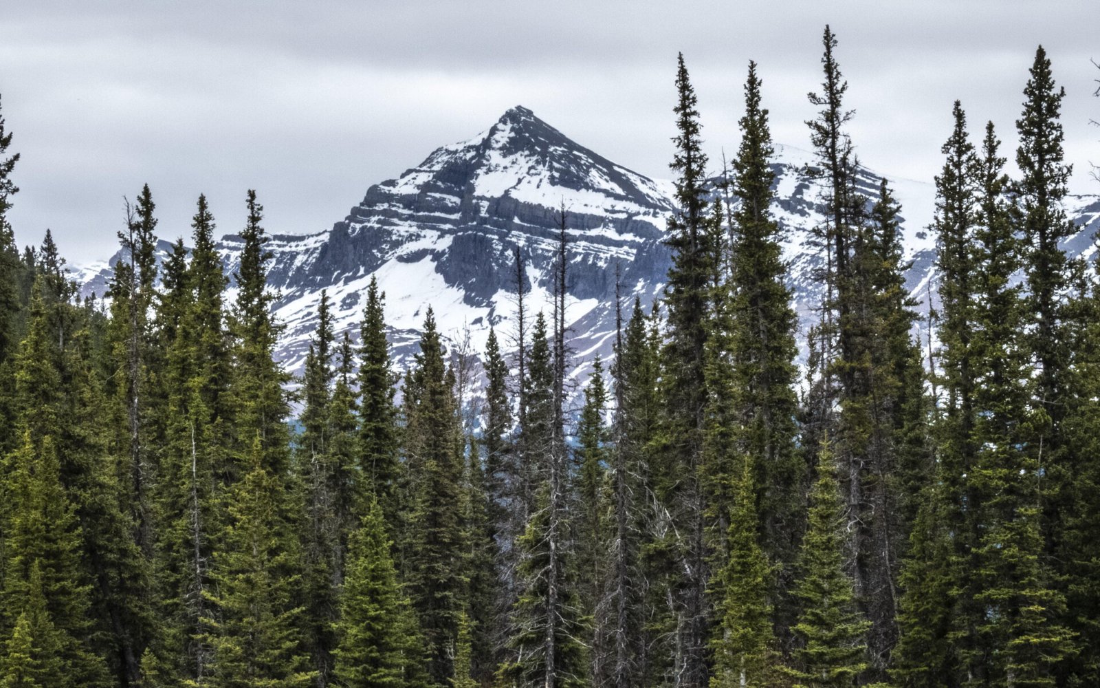 Spruces Forest and Snowed Mountain - 1920x1200