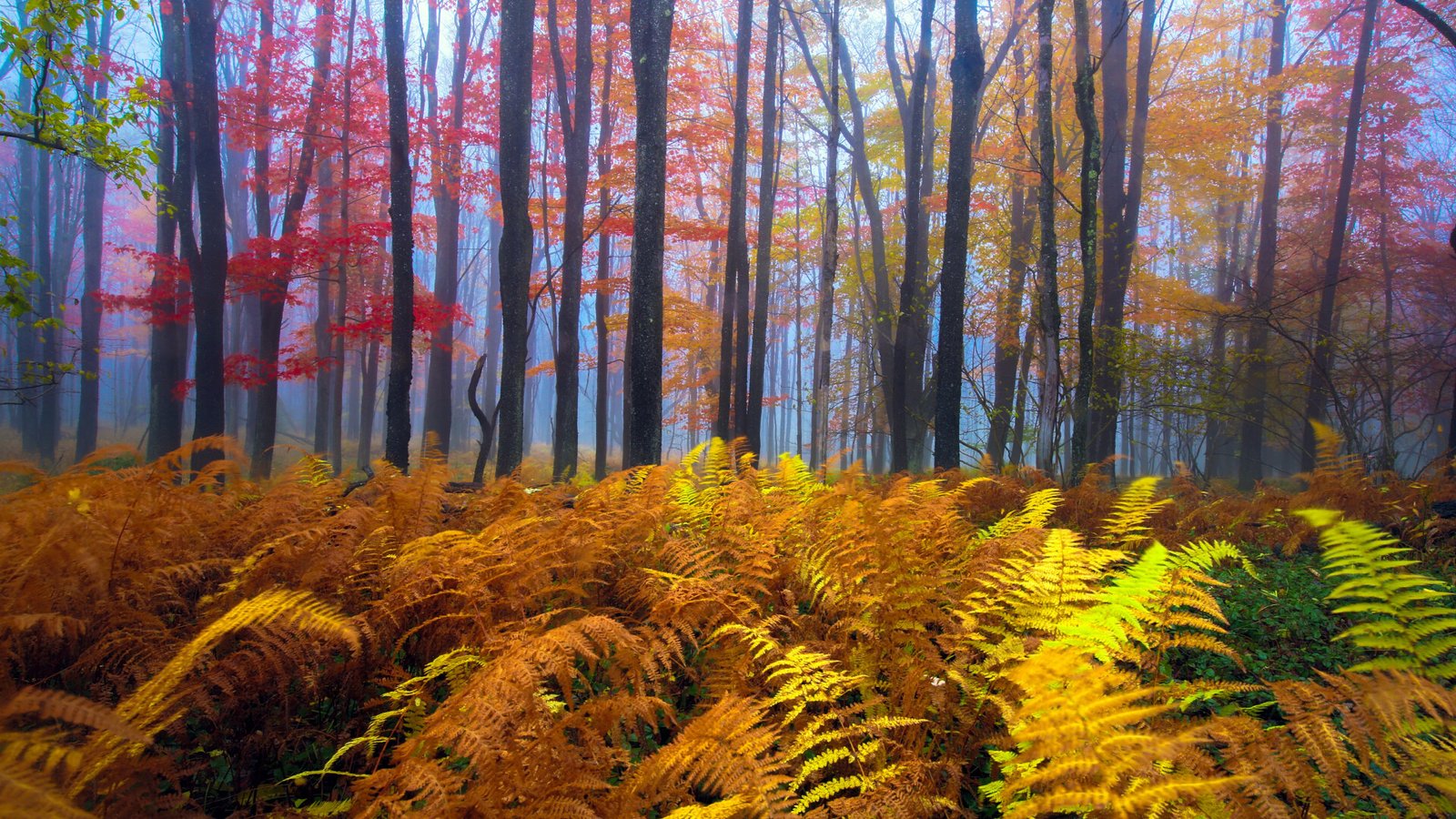 Amazing Beautiful Autumn Forest with Yellow Leaves and Fern - 1920x1080 (1080p)