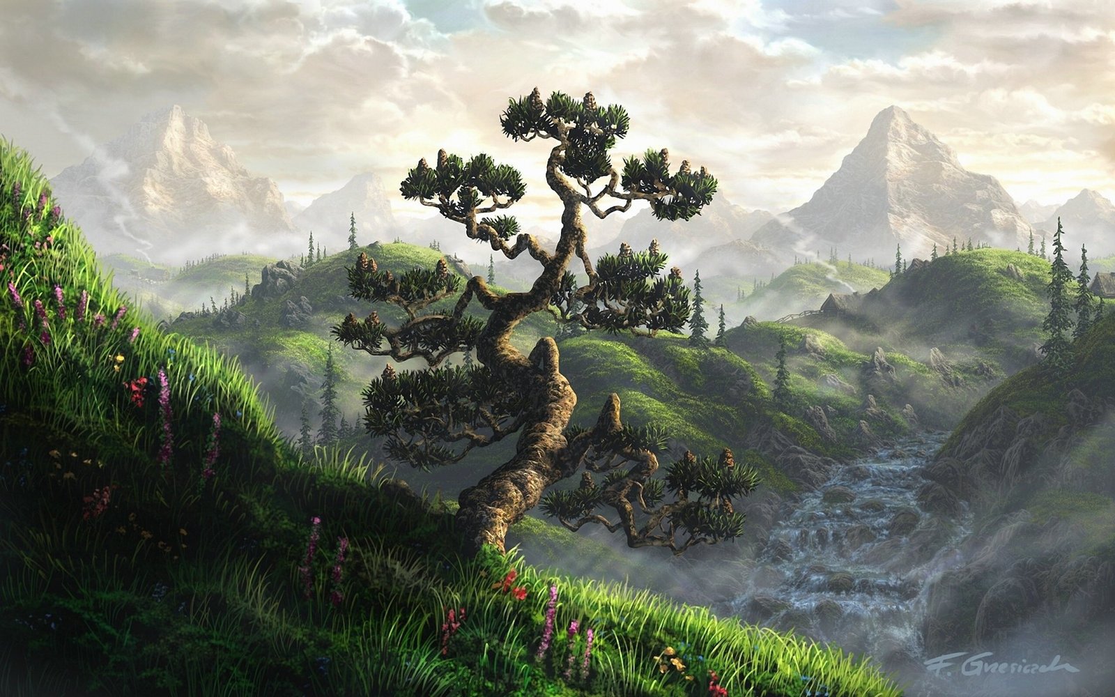 Amazing Fantasy Forest Perfect World River and Mountains - 2560x1600