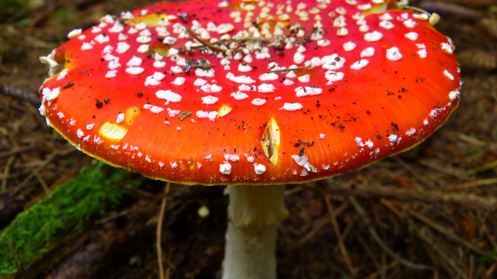Beautiful Big Red Mushroom and Green Grass - 2560x1440