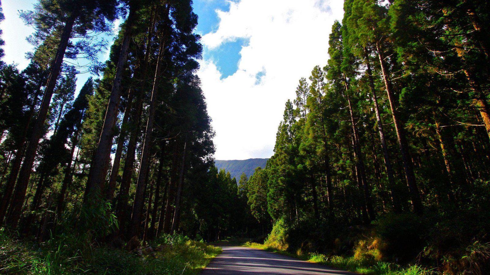 Beautiful Big Trees in the Green Forest and Road - 2560x1440