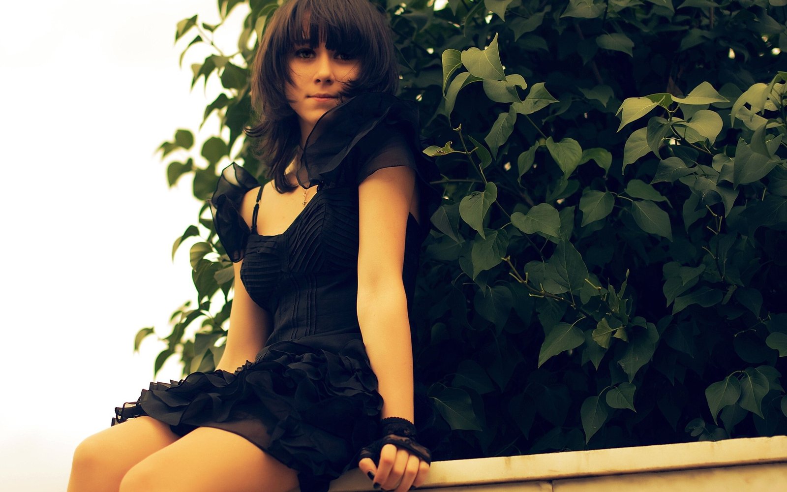 Beautiful Brunette Girl in Black Dress - 2560x1600